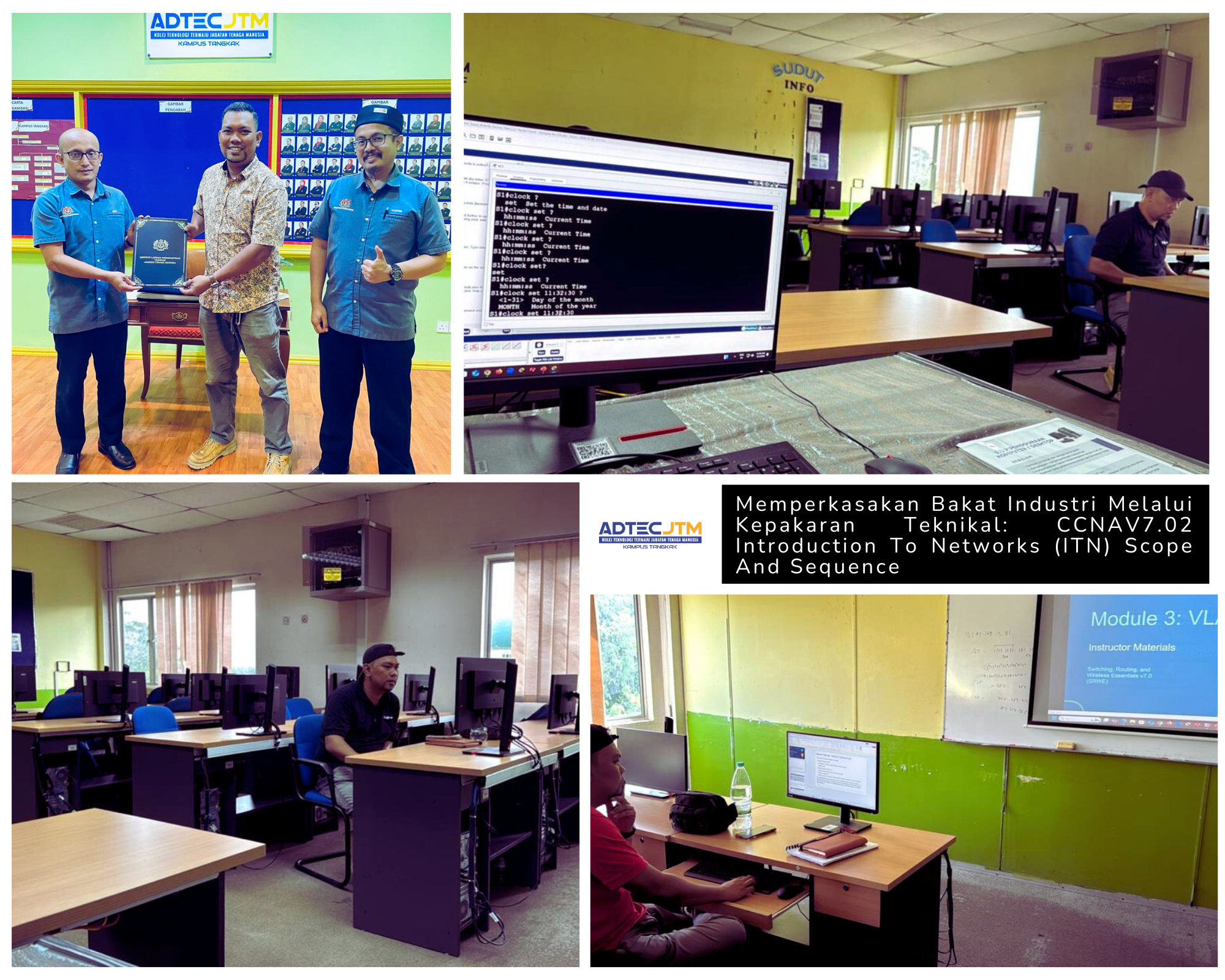 ADTEC JTM Tangkak Campus strengthened its role in human capital transformation by hosting the Short-Term Course (KJP) CCNAV7.02: Introduction To Networks (ITN) Scope And Sequence.